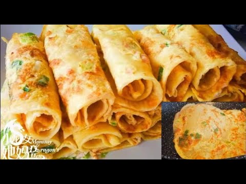 *早餐鸡蛋灌饼/火腿葱花鸡蛋饼 手不沾面 5分钟搞定