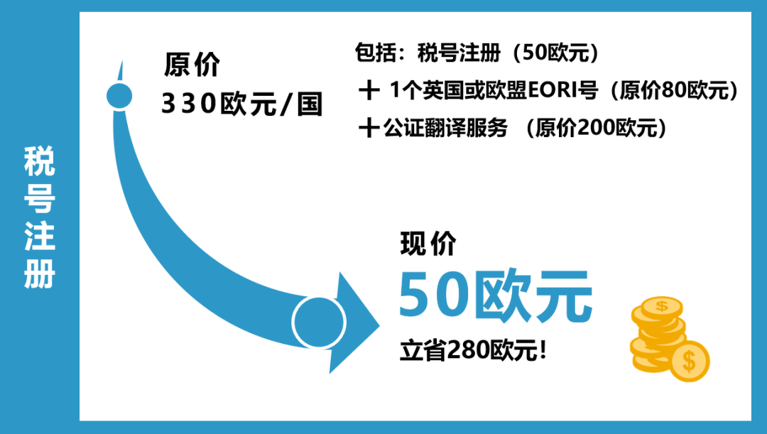 在前六个月免费申报的福利下,同时支持按月扣费,卖家进入服务后,只需先花费50欧元注册费用,即可尝试体验一站式增值税服务!