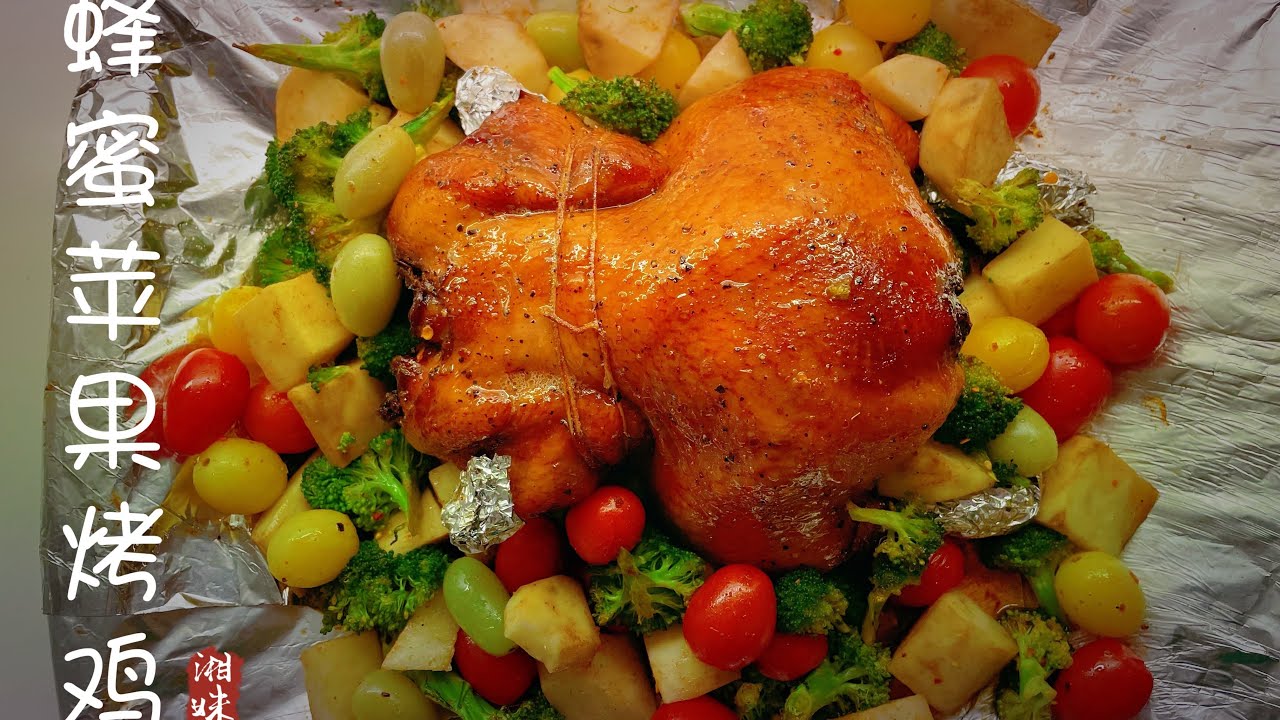 蜂蜜苹果烤鸡,外酥里嫩,一口爆汁,增加冬季的幸福感,高颜值让节日的气氛更浓厚。