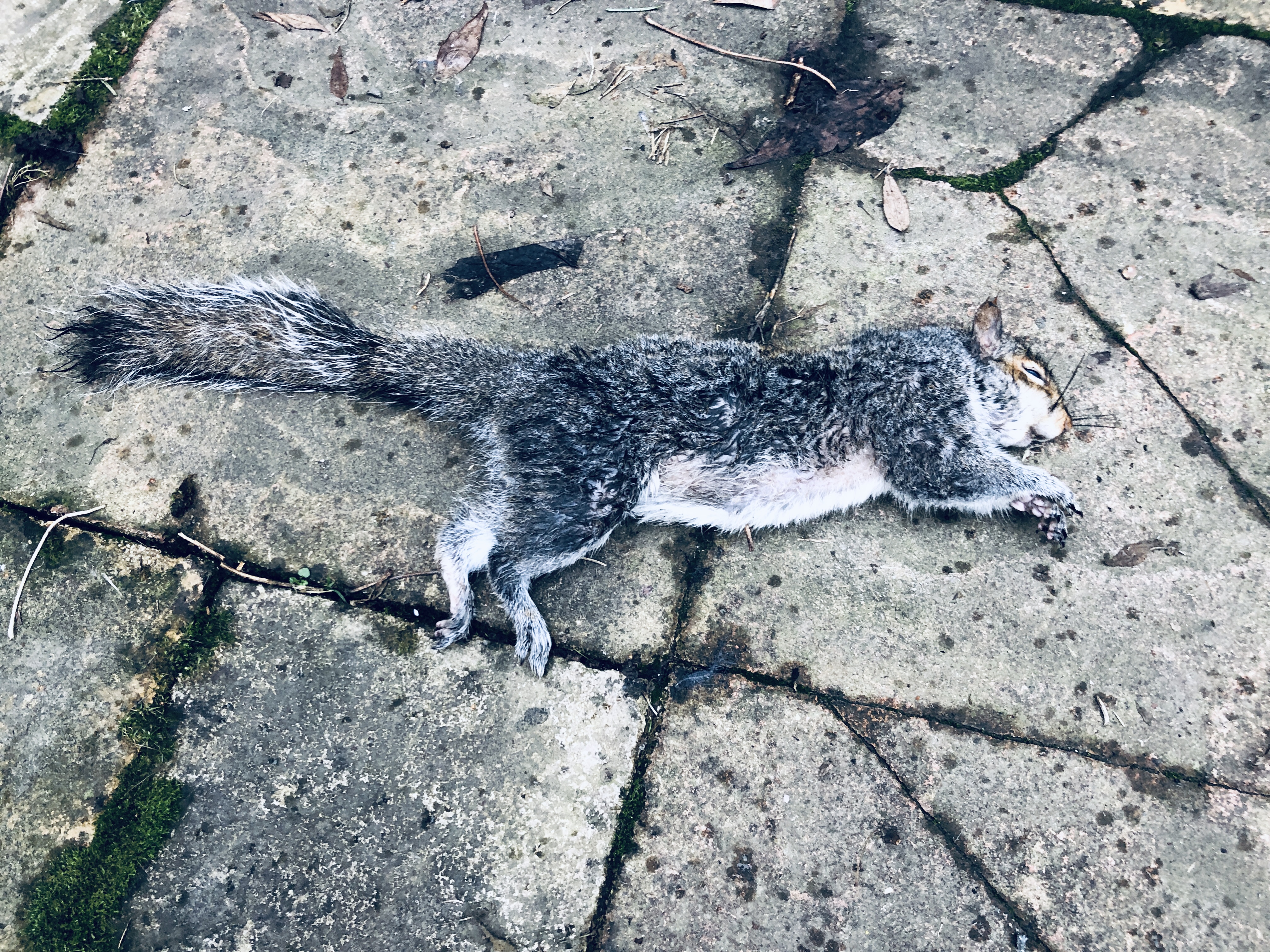 灰松鼠从鼻子到尾巴尖,看着比我儿还长。