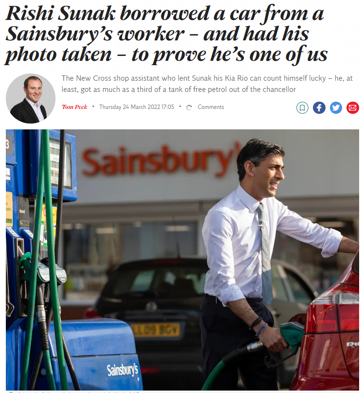 上个月苏纳克被拍到正在给“一辆普通的汽车”加油,以证明他也和英国普通大众一样;而后其被爆出,这辆车其实属于一名Sainsbury的员工,苏纳克只是借来拍照。但税务风波却是彻底触及到了英国人的“痛点”,批评家质疑,当英国物价正在飞涨时,负责国家财政的管理者是否真的了解这些普通家庭所面临的问题?“所有东西的成本都在上升。现在我每周开车去上班要花30英镑–这相当于我三个小时的工资。而苏纳克根本不了解情况。”