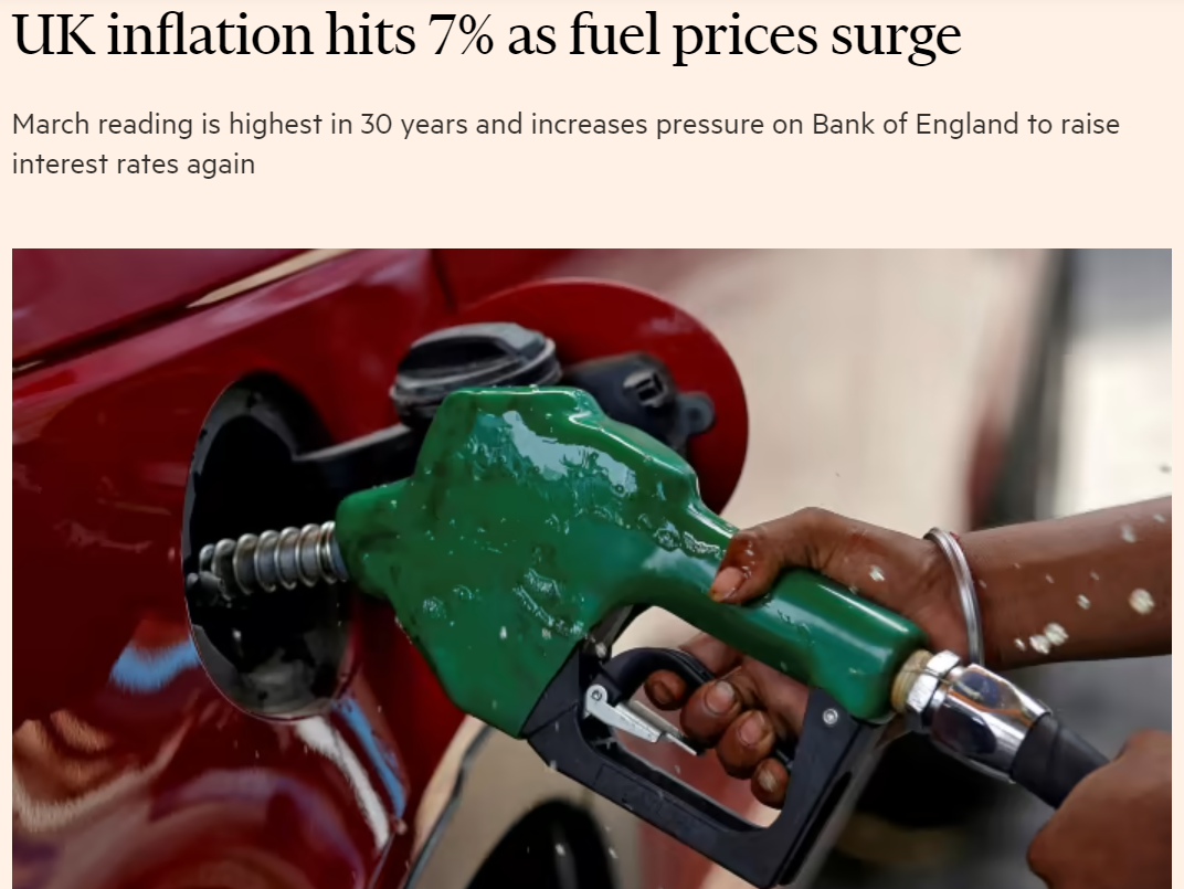 英国3月通胀率飙升至7%,创30年来新高,可能使英国生活成本危机加剧。与之形成鲜明对比的是,上年同期英国消费者价格指数升幅还不到1%。《卫报》专栏作家Frances Ryan表示,大多数人抵制的不是苏纳克的家庭财富,而是质疑他是否能从普通家庭的经济境况出发制定财政政策。