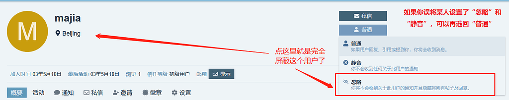 问一下,如果一个人已经把自己的信息隐藏,还有办法屏蔽这个人的发言和帖子吗。谢谢