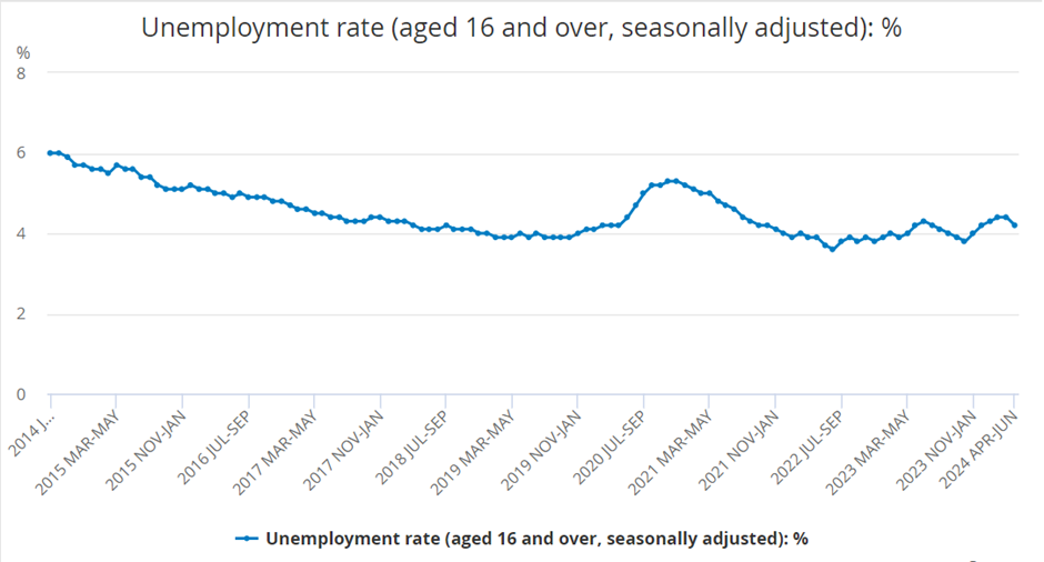 2014-2024英国失业率变化示意图