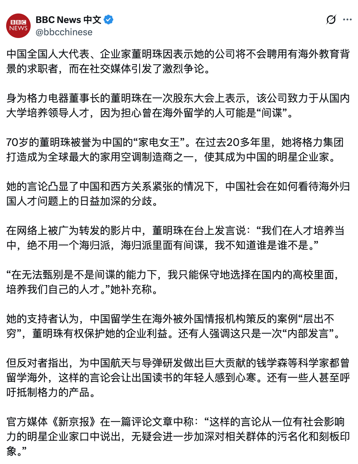 董明珠都说了,留学生里有坏人,更别说你们这些入外籍的了,大家现在都醒悟了: