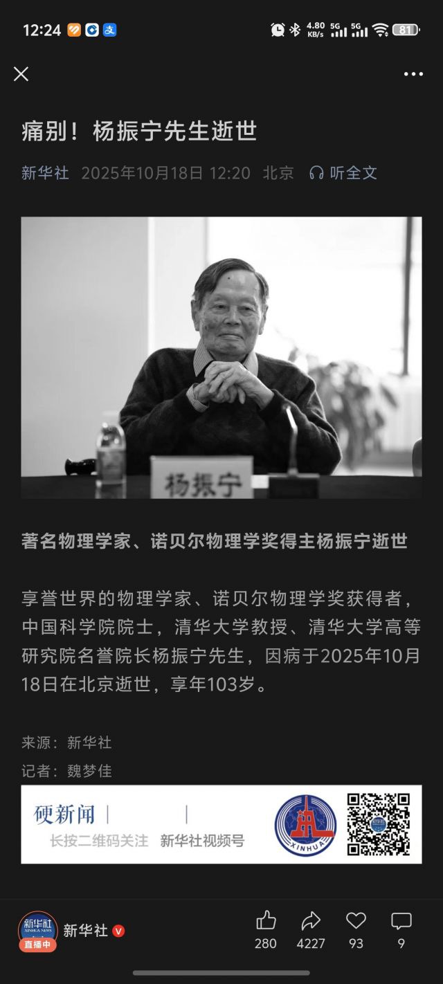 刚刚才知道其实杨老有三个孩子。他儿子们都有六七十岁了。